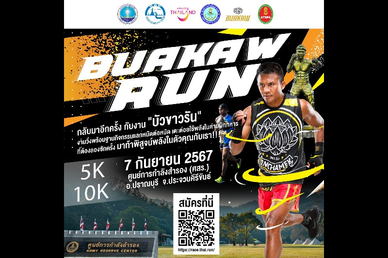การท่องเที่ยวแห่งประเทศไทย (ททท.) จับมือ ศูนย์การกำลังสำรอง (ศสร.) และบัวขาว แกลลอรี่ จัดกิจกรรม “Buakaw Run” เป็นการผสมผสานกิจกรรมวิ่งเพื่อสุขภาพ และการท่องเที่ยวเชิงกีฬา โดยมีเป้าหมายเพื่อส่งเสริมสุขภาพ การสร้างความสัมพันธ์ในชุมชน รวมไปถึงส่งเสริมให้นักท่องเที่ยวทั้งชาวไทยและชาวต่างชาติได้มีโอกาสเรียนรู้มวยไทย ผ่านการผสมผสานเข้ากับกิจกรรมการวิ่ง เป็นการส่งเสริมและกระตุ้นให้เกิดการเดินทางท่องเที่ยวในประเทศ โดยใช้กิจกรรมการท่องเที่ยวเชิงกีฬาเป็นจุดขาย ซึ่งจะก่อให้เกิดรายได้หมุนเวียนทางเศรษฐกิจมากยิ่งขึ้น
