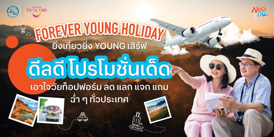 การท่องเที่ยวแห่งประเทศไทย (ททท.) เปิดตัวแคมเปญ “Forever Young Holiday – ยิ่งเที่ยวยิ่ง Young” เพื่อมอบสิทธิประโยชน์ที่คุ้มค่าและประสบการณ์การเดินทางสุดพิเศษ ให้กับกลุ่ม Active Silver Age ภายใต้คอนเซ็ปต์ The Next 50+ Hip Like 20 เพราะวัยนี้มีไฟ ใจยัง 20