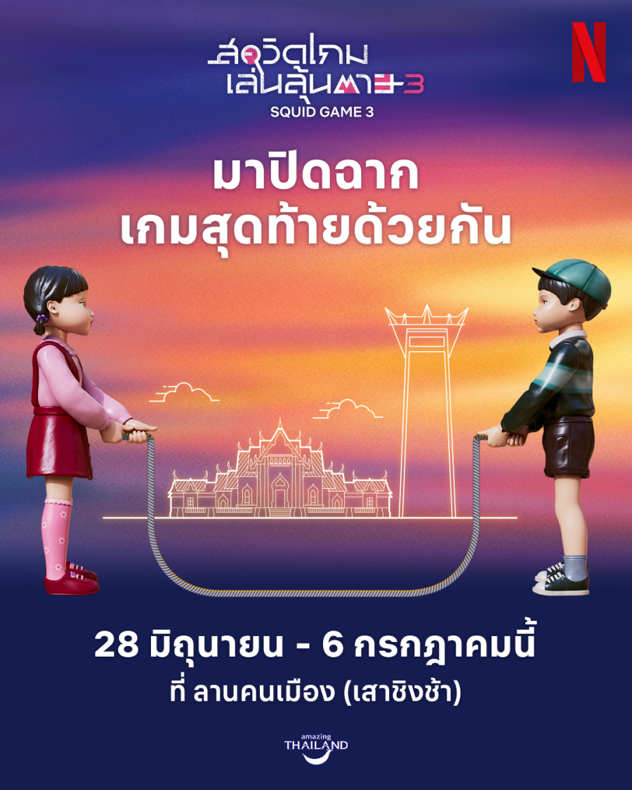 ซีรีส์ สควิดเกม เล่นลุ้นตาย (Squid Game) ซีซั่น 3 เตรียมจัดกิจกรรมสุดพิเศษ พา “โกโกวายักษ์ใหญ่ที่สุดในโลก” กลับมาหาชาวไทยอีกครั้งในภาพลักษณ์ใหม่กับชุดสีชมพู พร้อมแท็กทีมพาเพื่อนใหม่ “ชอลซู” มาชวนแฟนๆ ชาวไทยไปสัมผัสประสบการณ์สุดยิ่งใหญ่ในกิจกรรมพิเศษต้อนรับการมาถึงของบทสรุปสุดท้ายของ สควิดเกม เล่นลุ้นตาย (Squid Game) ในซีซั่นที่ 3 ซึ่งเตรียมจะสตรีมให้รับชมพร้อมกันทั่วโลกทาง Netflix ในวันที่ 27 มิถุนายนนี้
