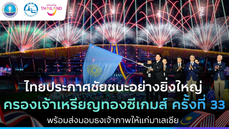 ปิดฉากลงอย่างสวยงามและยิ่งใหญ่! สำหรับซีเกมส์ ครั้งที่ 33 ที่ประเทศไทยเป็นเจ้าภาพ ทัพนักกีฬาไทยทำผลงานยอดเยี่ยม สร้างประวัติศาสตร์กวาดเหรียญทองสูงสุดถึง 233 เหรียญ ครองตำแหน่ง “เจ้าเหรียญทอง”