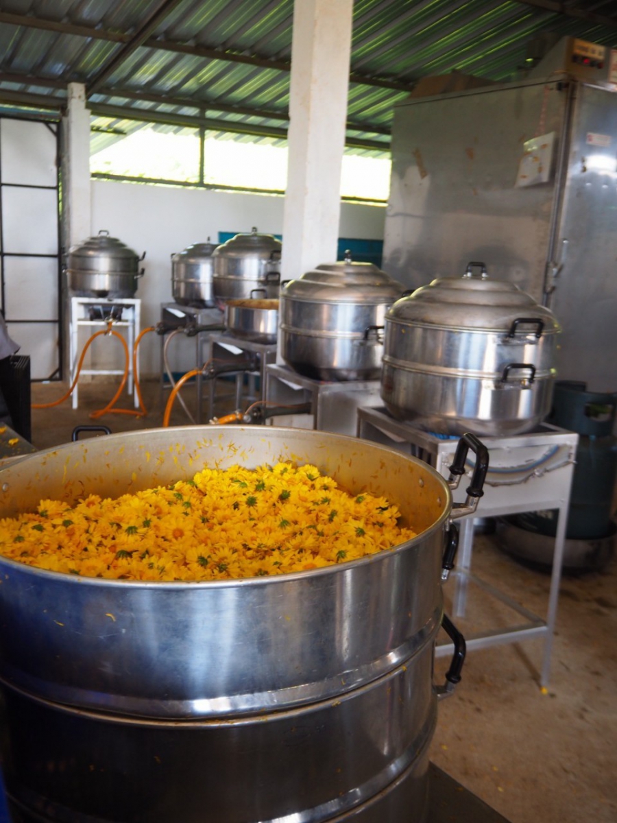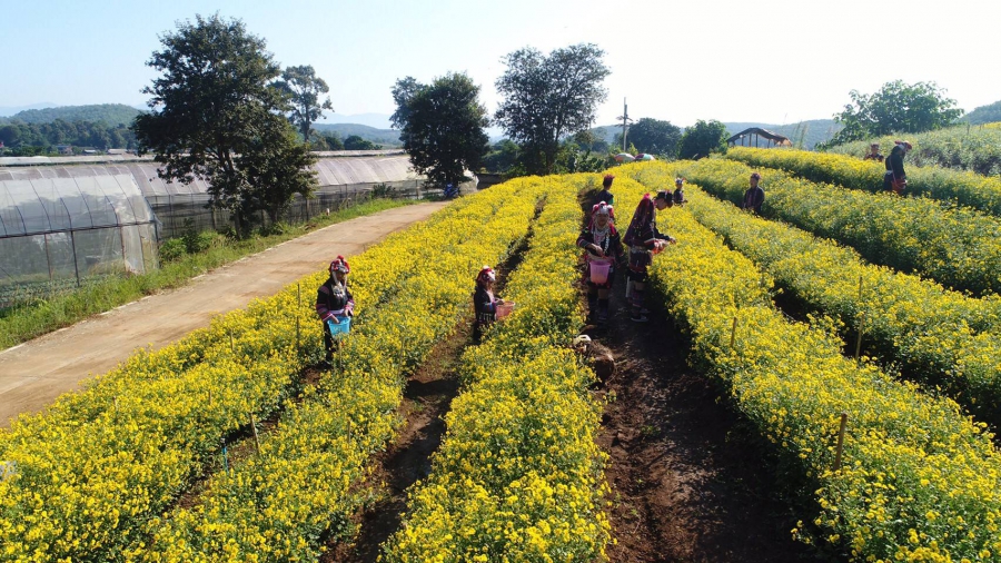 ต่อมา เมื่อปี 2551 ได้มีการส่งเสริมให้ปลูกและแปรรูปดอกเก๊กฮวย (เหลืองสะโงะ) อบแห้ง ทำให้เกิดโครงการการพัฒนากระบวนการแปรรูปดอกคาโมมายล์ และดอกเบญจมาศ (เก๊กฮวย) อบแห้ง กลายเป็นผลงานการวิจัยและพัฒนาเทคโนโลยีการแปรรูป ที่มุ่งเน้นพัฒนาผลิตภัณฑ์ให้มีความหลากหลาย มีคุณภาพที่มากขึ้น และถือเป็นกุญแจสำคัญในการคงคุณค่าทางโภชนาการ คงไว้ซึ่งกลิ่น รส และยืดอายุการเก็บรักษา จนได้ผลิตภัณฑ์ต้นแบบที่ถูกสุขลักษณะ มีความปลอดภัยด้านอาหาร ควบคู่ไปกับการออกแบบบรรจุภัณฑ์ที่เหมาะสม เป็นการเพิ่มมูลค่าในเชิงพาณิชย์อย่างแท้จริง