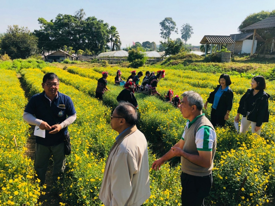 งานวิจัยการพัฒนากระบวนการแปรรูปดอกคาโมมายล์ และ ดอกเบญจมาศ (เก๊กฮวย) อบแห้ง.ซึ่งรับผิดชอบงานวิจัยโดย ผู้ช่วยศาสตราจารย์ ดร.ฤทธิชัย อัศวราชันย์ มหาวิทยาลัยแม่โจ้ เป็นโครงการที่มีการทำงานร่วมกันระหว่าง สวก. ผู้สนับสนุนทุนวิจัย มหาวิทยาลัยแม่โจ้ผู้รับทุนและดำเนินการวิจัย และศูนย์พัฒนาโครงการหลวงสะโงะ เจ้าของพื้นที่และดูแลเกษตรกรในพื้นที่ โดยมีโจทย์หลักของงานการวิจัยครั้งนี้ คือ การพัฒนากระบวนการแปรรูปชาดอกไม้อบแห้งที่มีประสิทธิภาพ บนพื้นที่ของโครงการประมาณ 200 ไร่ ซึ่งสอดคล้องกับแผนพัฒนาพื้นที่ 4 ประการ ของศูนย์พัฒนาโครงการหลวงสะโงะ เพื่อปรับปรุงงาน พัฒนาอาชีพ และสังคมหมู่บ้านดอยสะโงะ ลดปัญหาทางด้านยาเสพติด เพื่อสร้างความมั่นคงให้กับหมู่บ้านชายแดนไทย-ลาว และไทย-พม่า เป็นแหล่งถ่ายทอดวิทยาการการเกษตรแผนใหม่ เพื่อสนับสนุนด้านเกษตรกรรมแก่หน่วยงาน และสถาบันเกษตรกรในจังหวัดเชียงราย และเพื่อใช้เป็นพื้นที่สำหรับฝึกอบรมนักศึกษาเกษตรให้มีความชำนาญ ในการปฏิบัติงาน สามารถดูแลพืชและสัตว์บนพื้นที่สูงเพื่อเป็นแนวทางประกอบอาชีพต่อไป