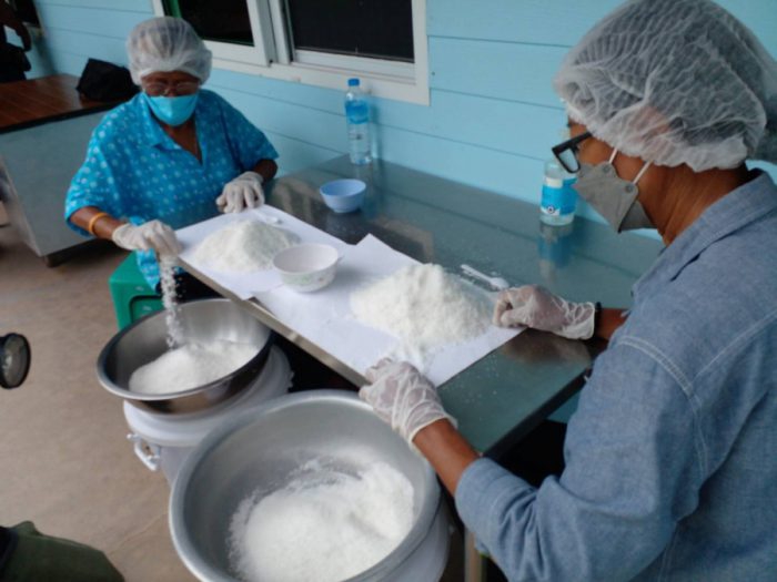 ผลิตภัณฑ์แปรรูปจากเกลือ “บ้านย่าสปาเกลือ” อำเภอเมือง จังหวัดสมุทรสาคร ดูแลโดย ป้าแดง-ดวงจันทร์ กลัดกลีบ ประธานวิสาหกิจชุมชนกลุ่มสัมมาชีพบ้านย่าสปาเกลือ (Sea Salt Farm) รับชมการทำนาเกลือ และขั้นตอนวิธีการทำผลิตภัณฑ์แปรรูปจากเกลือ ผลิตภัณฑ์ เกลือสปาขัดผิวสมุนไพร, ดอกเกลือ, สบู่เกลือ, ผงยาสีฟัน, สบู่ดอกเกลือ ซึ่งมีส่วนช่วยปลอบประโลมผิวคุณด้วยคุณสมบัติของสมุนไพร ช่วยต่อต้านอนุมูลอิสระ อันเนื่องมาจากสภาพแวดล้อม ติดต่อสอบถามได้ที่ โทร.091-794-9718