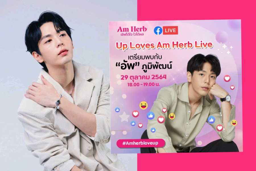 แบรนด์ Am Herb เอาใจสายวายด้วยโปรโมชั่นพิเศษที่จะทำเอาสายวายใจเต้นระรัว ด้วยกิจกรรมUp Love Am Herb Live พบกับการไลฟ์สด ของอัพ ภูมิพัฒน์ ในวันที่ 29 ตุลาคมนี้ เวลา 18.00 น. ถึง 19.00 น. นี้ ที่เพจ Facebook : Am Herb สาวๆ. จะได้ลุ้น VDO Call กับน้องอัพ และรับถุงผ้า, หมอนอิง, ภาพโพลารอยด์พร้อมลายเซ็น หรือภาพแคนวาสขนาดใหญ่พร้อมลายเซ็น รูปลาย Fan Art สุดต๊าชเอ็กซ์คลูซีฟจากแบรนด์อัมเฮิร์บเท่านั้น ไปเป็นที่ระลึกให้ฟินกันอีกด้วย สำหรับคุณสาวๆ ที่ซื้อผลิตภัณฑ์โปรโมชั่นสุดพิเศษของแบรนด์ Am Herb ร่วมลุ้นเข้าร่วมกิจกรรมนี้