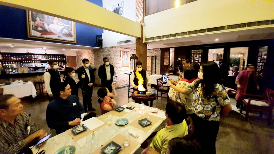 พร่อมศิลปินดารานักแสดง อาทิ ชรัส เฟื่องอารมย์, ชนานา นุตาคม โดยมี Mr. Yashpal Thakur ผู้จัดการร้าน ให้การต้อนรับ พร้อมเสิร์ฟเมนูอาหารอินเดียจาก ลุ่มน้ำสินธุประเทศอินเดียถูกปากคนไทย เริ่มจาก เมนูเรียกน้ำย่อย สไตล์ปิ้งย่าง แบบอินเดีย ที่เรียกว่า อาหารทันดูรี ไปจนถึงเมนูอาหาร main course ยอดนิยม เช่น ข้าวหอมมาบาสมาติไก่, ผักโขมสับไส้ครีม, แกงกระหรี่เนื้อแพะรสเข้มข้น เสิร์ฟมาพร้อมกับแป้งนานหลากชนิดที่รังสรรค์มาจาก Ganesh Yadav-( Executive Sous Chef )ท่ามกลางบรรยากาศหรูสไตล์อินเดียที่ร้านอาหารอินดัส ซอยสุขุมวิท 26