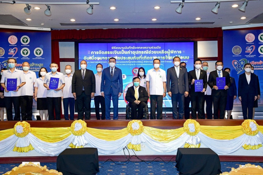 นายอนุทิน ชาญวีรกูล รองนายกรัฐมนตรีและรัฐมนตรีว่าการกระทรวงสาธารณสุข และ นายศักดิ์สยาม ชิดชอบ รัฐมนตรีว่าการกระทรวงคมนาคม เป็นประธานร่วมกันในพิธีลงนามบันทึกข้อตกลงความร่วมมือการจัดสรรเงินเป็นค่าอุปกรณ์ช่วยเหลือผู้พิการ อันเนื่องมาจากการประสบภัยที่เกิดจากการใช้รถใช้ถนน ระหว่าง กรมการขนส่งทางบก (ขบ.) โดย นายจิรุตม์ วิศาลจิตร อธิบดีกรมการขนส่งทางบก กับ สำนักงานปลัดกระทรวงสาธารณสุข โดยนายแพทย์ธงชัย กีรติหัตถยากร รองปลัดกระทรวงสาธารณสุข และกรมการแพทย์ โดยนายแพทย์สมศักดิ์ อรรฆศิลป์ อธิบดีกรมการแพทย์ โดยมี นายชยธรรม์ พรหมศร ปลัดกระทรวงคมนาคม นายสรพงศ์ ไพฑูรย์พงษ์ รองปลัดกระทรวงคมนาคมและประธานกรรมการกองทุนเพื่อความปลอดภัยในการใช้รถใช้ถนน ผู้บริหารระดับสูงกระทรวงคมนาคม สำนักงานปลัดกระทรวงสาธารณสุข และกรมการแพทย์ ร่วมเป็นเกียรติในพิธี ณ ห้องประชุมอาคารสโมสรและหอประชุม กระทรวงคมนาคม