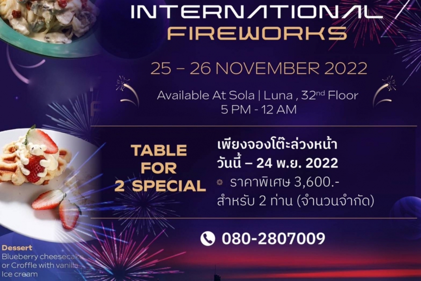 Pattaya International Fireworks รับจองเซ็ทดินเนอร์สำหรับค่ำคืนสุดโรแมนติก พร้อมชมพลุตระการตา