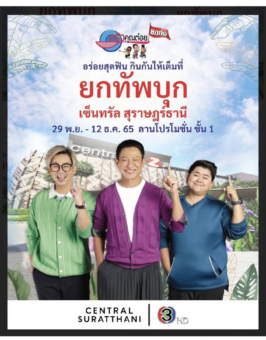 ตูน-พัทธยศ ลิมปพัทธ์ กรรมการผู้จัดการ บริษัท บอร์น โปรเจค จำกัด ในฐานะผู้จัดงานได้กล่าวเชิญชวนพี่น้องชาวสุราษฎร์เตรียมพบกับ”ครัวคุณต๋อยยกทัพ บุกเซ็นทรัลสุราษฎร์ธานี” ณ ลานโปรโมชั่น ตั้งแต่วันที่ 29 พฤศจิกายน ถึงวันที่ 12 ธันวาคม 2565
