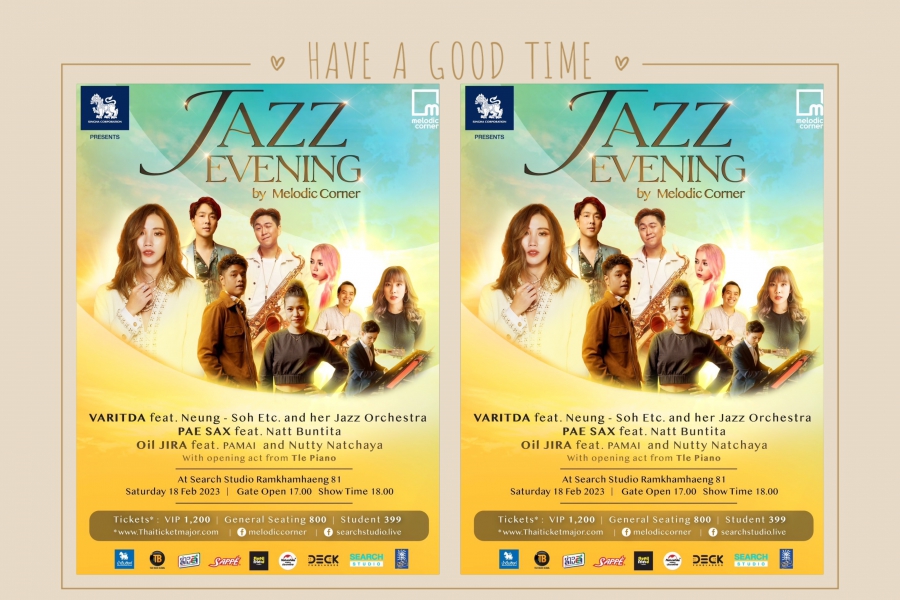 Singha Corporation และ SEARCH STUDIO ร่วมด้วยพันธมิตร พร้อมเสิร์ฟความสุขให้ผู้ฟังอย่างต่อเนื่องในคอนเสิร์ต Jazz Evening by Melodic Corner คอนเสิร์ตที่จะเปิดพื้นที่ให้ศิลปินแจ๊สแนวหน้าและรุ่นใหม่ได้ปล่อยของ แสดงผลงาน และพบปะกับแฟนเพลง ที่อบอวลไปด้วยบรรยากาศแห่งความสุขและเป็นกันเองจากค่ายเพลง Melodic Corner (เมลอดิก คอนเนอร์) ซึ่งเป็นค่ายเพลง Urban Jazz สำหรับคนที่รักในดนตรีที่ผสมผสานความเป็น Jazz, Soul, R&B และ Blues ได้อย่างลงตัว