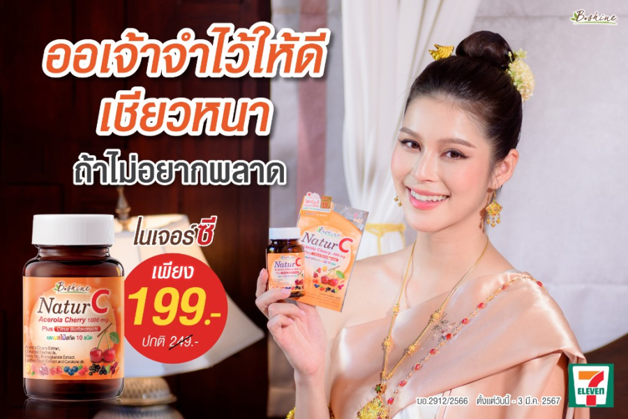 ดาราสาวคุณยิหวา – ปรียากานต์ ใจกันทะ พรีเซ็นเตอร์คนสวยของผลิตภัณฑ์บีไชน์ วันนี้มีสิ่งดีๆ มาบอก คือ “แคมเปญ New Year Party at 7-Eleven” ของ “บีไชน์ เนเจอร์ซี” วิตามินซีธรรมชาติ 100% ขนาดบรรจุ 30 เม็ด แถมฟรีอีก 5 เม็ดในขวด รวมเป็น 35 เม็ด จัดโปรโมชั่นลดสุดคุ้ม ราคาพิเศษ ช่วยลูกค้าประหยัดเงิน เหลือเพียง 199 บาท จากปกติ ราคา 249 บาท และสมาชิก All member รับคะแนนเพิ่มอีก 100 คะแนน ตั้งแต่วันนี้ – 3 มกราคม 2567 หาซื้อได้ที่ร้านเซเว่น อีเลฟเว่น ทุกสาขาทั่วประเทศ